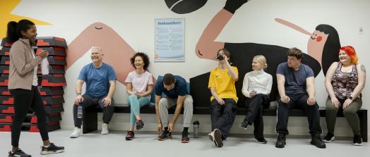 Myös Kluuvin liikuntakeskuksen kuvitukset on toteutettu yhteistyössä yliopisto-opiskelijoiden kanssa, tuoden tilaan omaleimaista ja yhteisöstä nousevaa ilmettä.